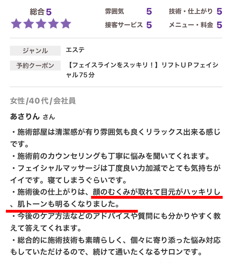 「総合的に施術技術が素晴らしい」と感じていただけた理由かもしれません。